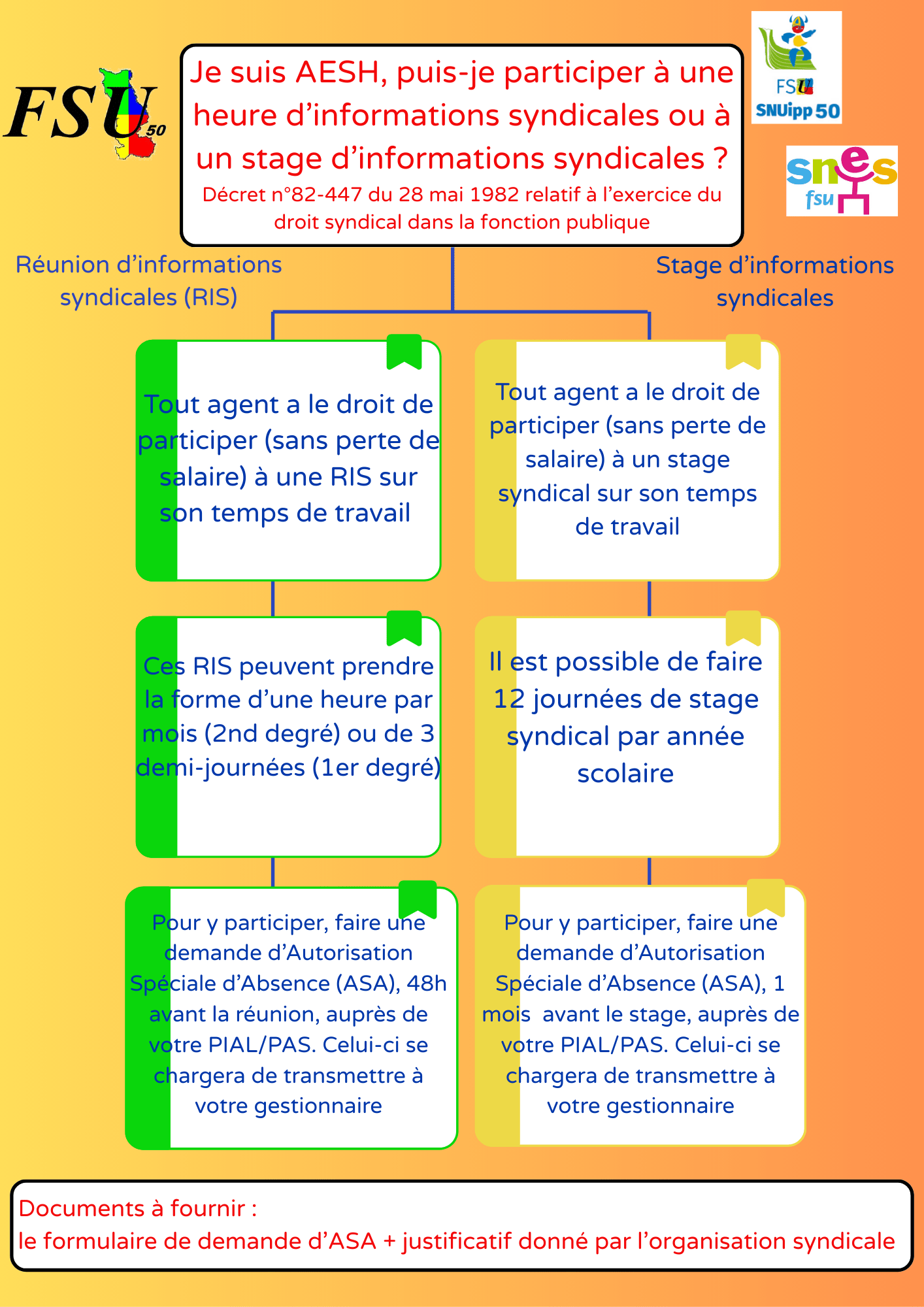 - Le formulaire de demande d’autorisation à télécharger (cocher « Autorisation d’absence de droit » et « autorisation d’absence à titre syndical »)