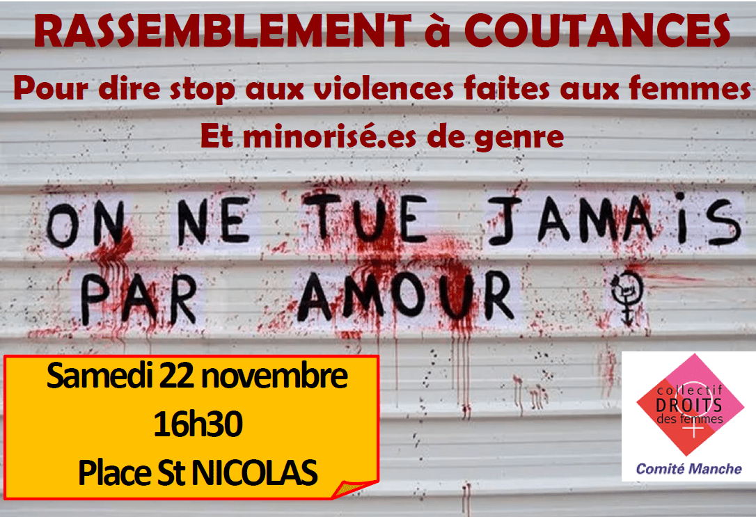 Mobilisations dans la Manche contre les violences faites aux femmes 2025-11-14T14:44:20+01:0014 novembre 2025|Catégories : À LA UNE| Cherbourg : 22 et 25 novembre Hauteville sur mer : 25 novembre Coutances : 22 novembre Partagez cet article ! FacebookXWhatsAppTelegramEmail Articles similaires Le guide le l’ACTION SOCIALE de l’académie de Normandie Le guide le l’ACTION SOCIALE de l’académie de Normandie 10 octobre 2024 Philippe Meirieu : « Il fait noir au pays des Lumières » Philippe Meirieu : « Il fait noir au pays des Lumières » 27 juin 2024 Les idées du RN pour l’école Les idées du RN pour l’école 27 juin 2024 Contre l’extrême droite, sortir de la torpeur, maintenant ! Contre l’extrême droite, sortir de la torpeur, maintenant ! 27 juin 2024